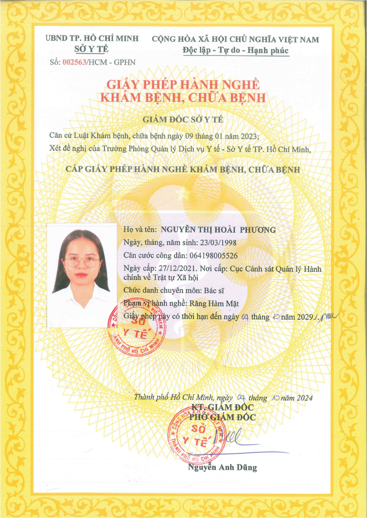 - Chứng chỉ Chỉnh hình Răng Mặt Bệnh viện Răng Hàm Mặt Trung ương thành phố Hồ Chí Minh